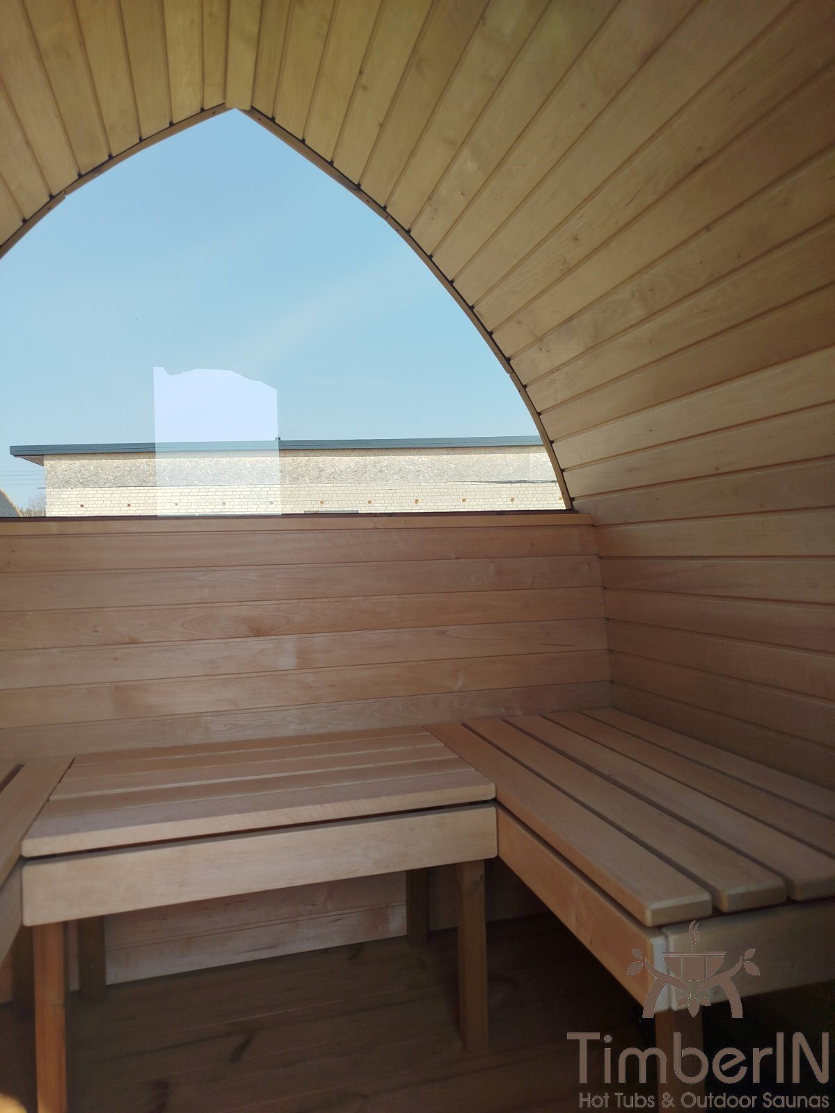 - 50% panoramisch raam aan de achterkant van de sauna;