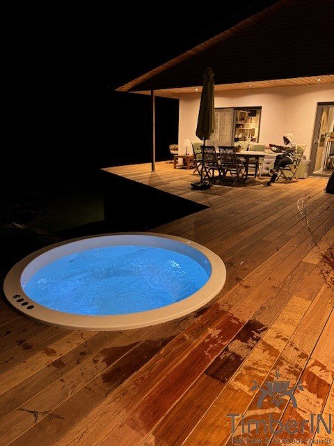 Afgelopen december 2020 hebben wij nadat we diverse mensen hebben gesproken die ook een hottub hadden van Timberin een inbouw hottub besteld.